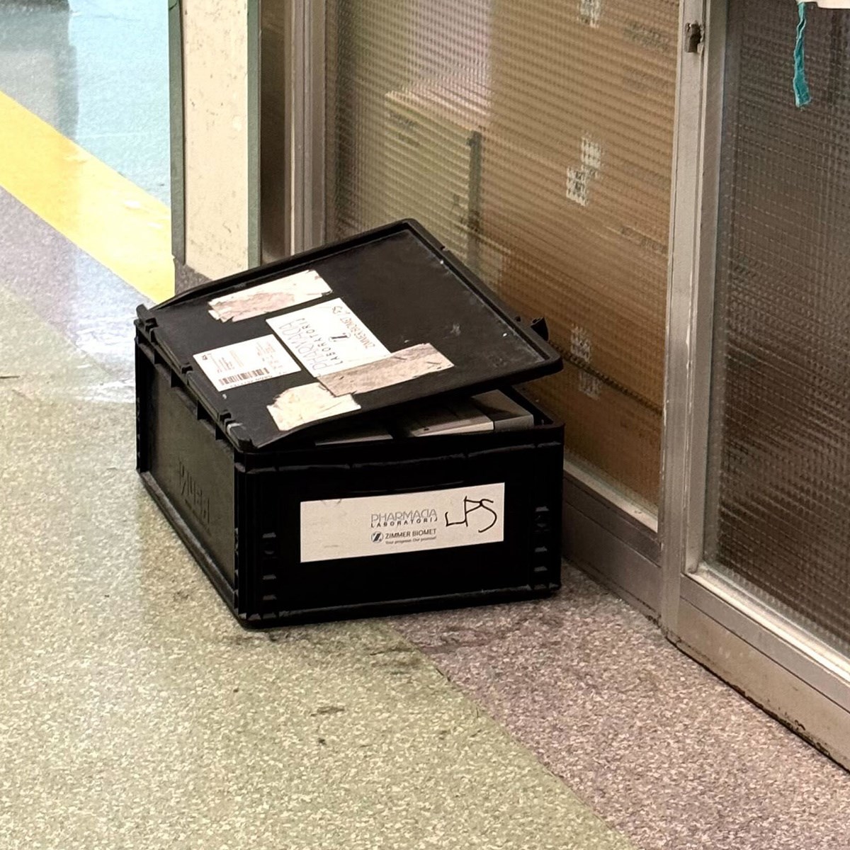 NA PODU Klinike za traumatologiju Kliničkog bolničkog centra Sestara milosrdnica vidljive su otvorene kutije koje sadrže ortopedske implantate te sanitetski materijal. U ovoj zagrebačkoj klinici otvorene kutije nalaze se na podu u hodniku i ispod stubišta, a riječ je o materijalu koji se koristi u operacijskim postupcima.