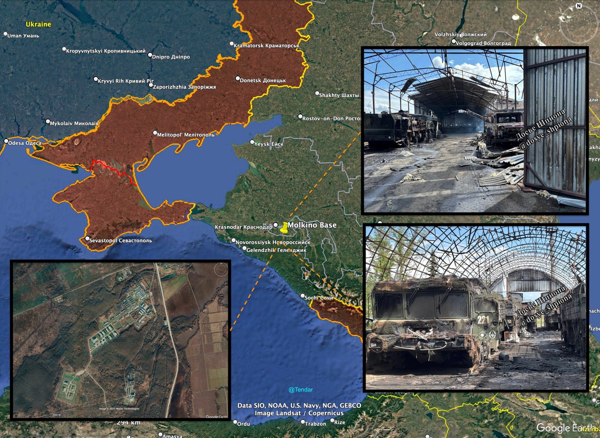 Prema dostupnim informacijama, napad je izveden pomoću 14 dronova kamikaza. Fotografije prikazuju izgorjeli lanser i nekoliko transportno-utovarnih vozila koja su bila skrivena u hangaru. Navodno je uništen najmanje jedan lanser, pet transportno-utovarnih vozila na šasiji MZKT te mobilno zapovjedno mjesto na kamionu KamAZ.