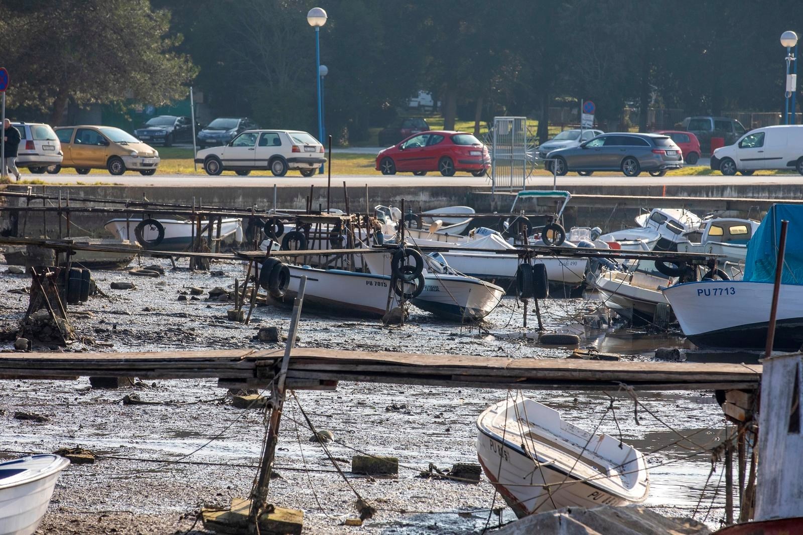 FOTO Ovako izgleda velika oseka u Fažani, čamci ostali na suhom