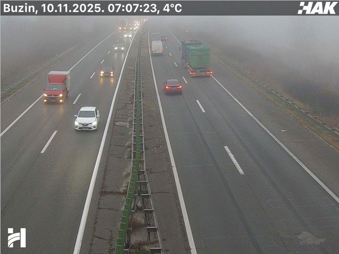 KOLNICI su mjestimice mokri i skliski na jugu i istoku zemlje. Smanjena je vidljivost zbog magle mjestimice na cestama u unutrašnjosti. Zastoji su povremeno u zonama radova te na gradskim prometnicama i obilaznicama. Vozače HAK upozorava da prilagode brzinu i način vožnje uvjetima na cestama.