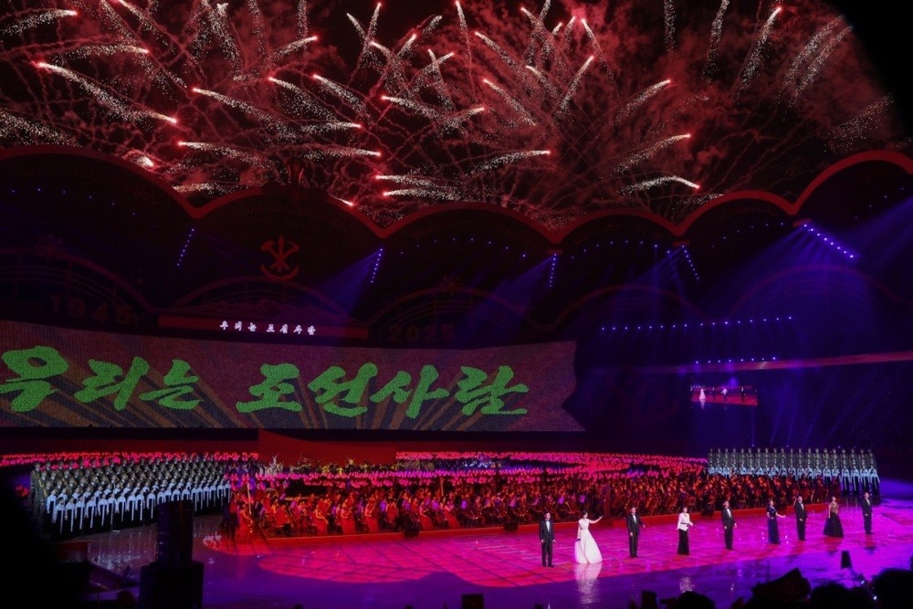 Na stadionu su održane masovne igre i umjetničke predstave, a Kim je bio u pratnji gostiju koje je velika okupljena masa pozdravila uzvicima "koji su zatresli noćno nebo glavnog grada", navela je KCNA.