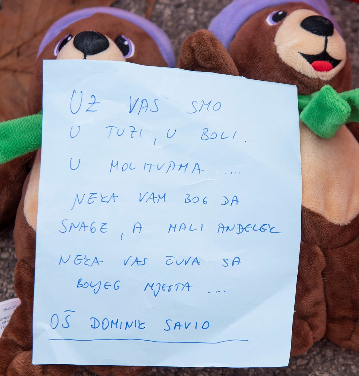 Mnoga djeca iz prvih razreda danas su ostavila poruke i igračke svom prijatelju. I brojni građani i danas su dolazili u Prečko kako bi odali počast malom dječaku koji je život izgubio u petak kada je u osnovnu školu u Prečkom upao 19-godišnji bivši učenik te škole te napao učiteljicu i djecu.