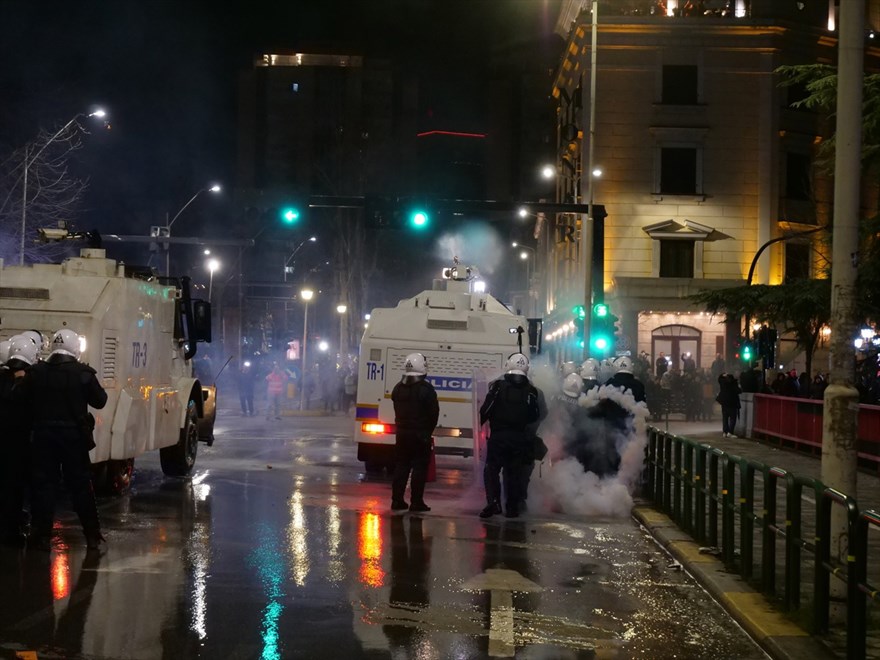 Prosvjednici su ponovno bacali Molotovljeve koktele i pirotehnička sredstva, dok je policija odgovorila suzavcem i vodenim topovima.