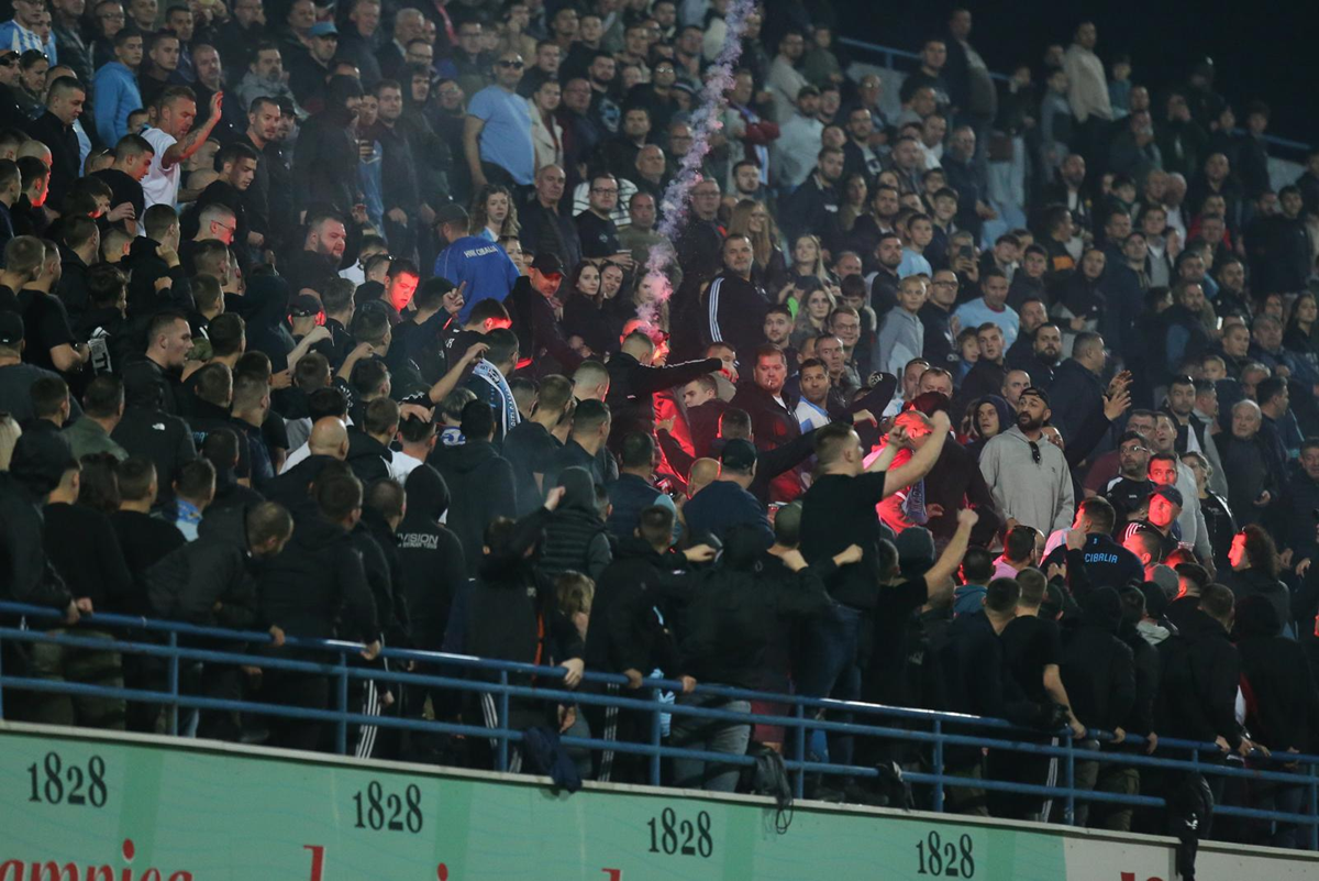 Oštećen je veći broj stolica na južnoj tribini te su one ubačene na atletsku stazu. Prvo na južnoj, a potom i na istočnoj tribini, zapaljeni su transparenti. Iz policije su napomenuli da nastavno na ova protupravna ponašanja slijedi daljnje kriminalističko istraživanje.