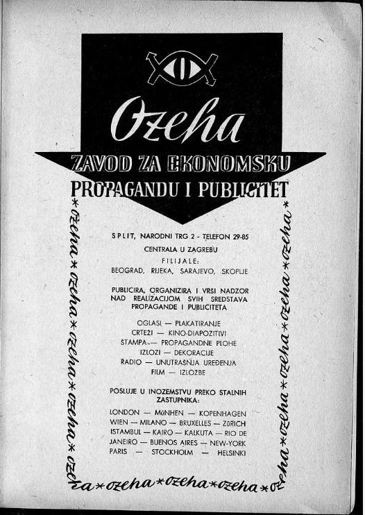 "Počivajući na tradiciji oglašavanja s početka dvadesetog stoljeća, Ozeha započinje s radom 1945. kao politički agitprop, a preuzimanjem zaposlenika agencije Interreklam postaje Oglasni zavod Hrvatske.