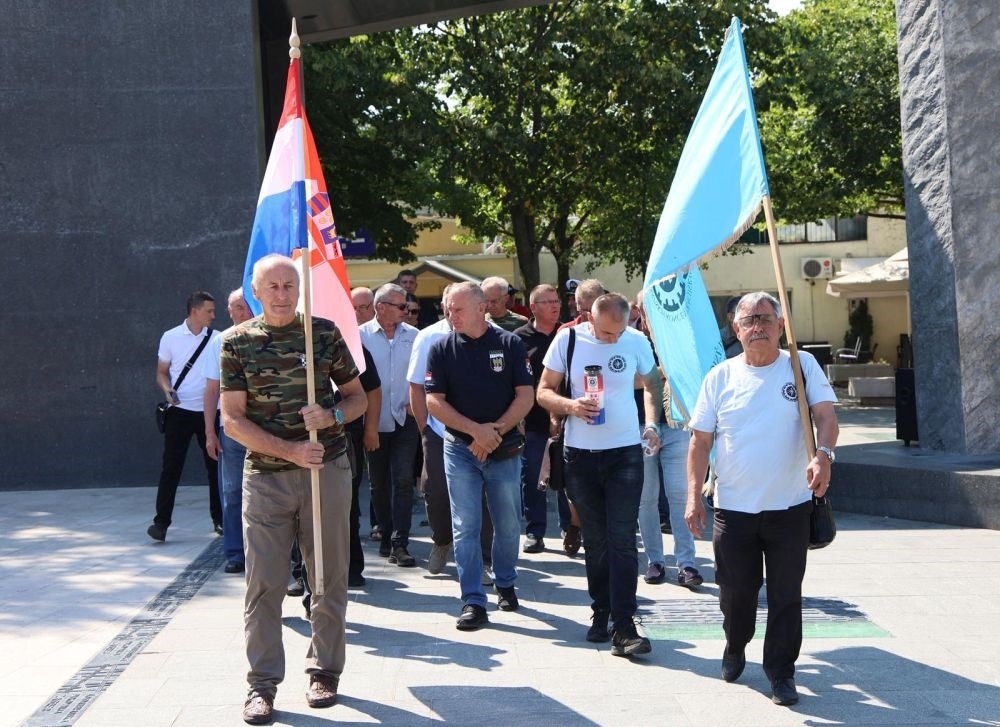 "Danas obilježavamo 'Dan logoraša' pod geslom 'Za dom spremni' jer to je naš braniteljski pozdrav iz Domovinskog rata zbog kojeg su mučeni i ubijani logoraši srpskih koncentracijskih logora i mi ćemo i ubuduće koristiti taj pozdrav", dodao je.