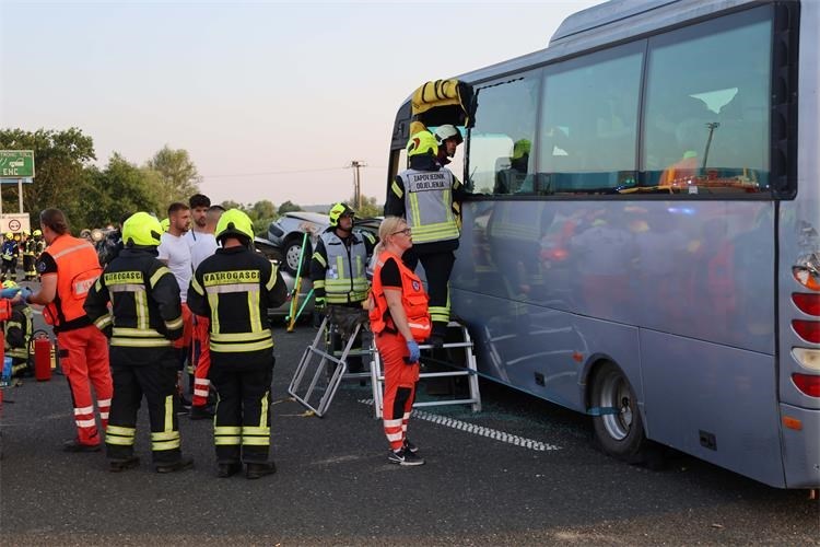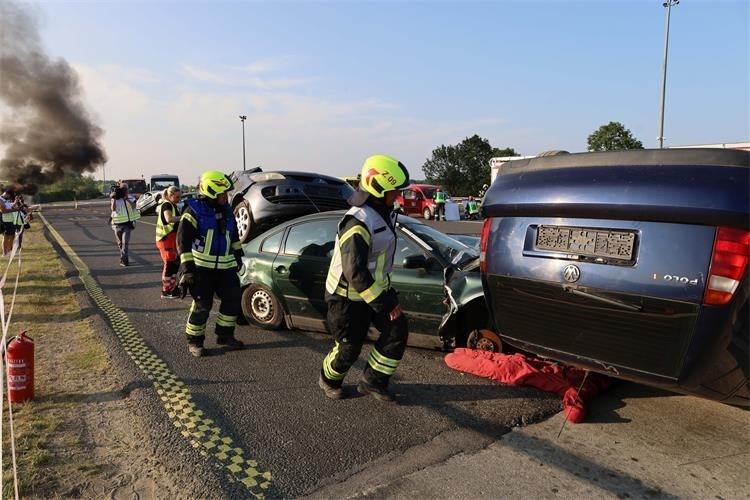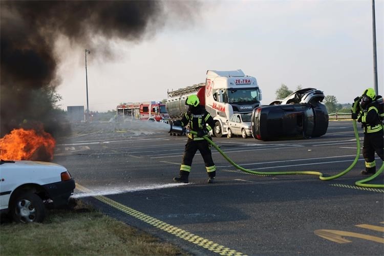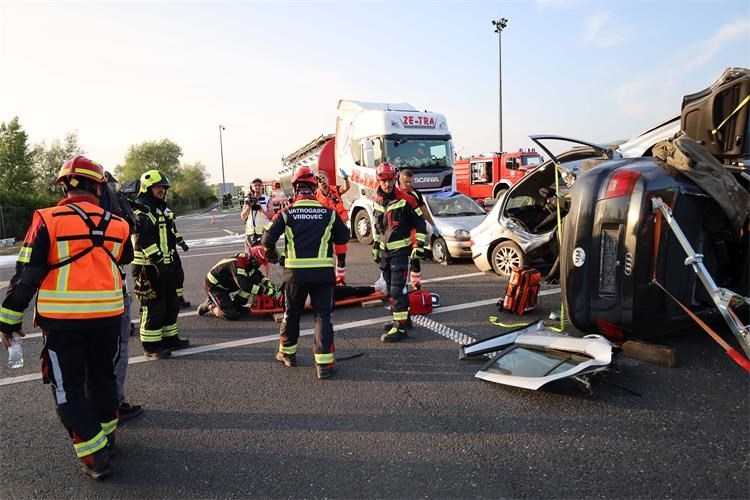 NA AUTOCESTI A4 između čvorova Komin i Sveta Helena večeras je održan drugi dio velike vježbe "Sigurnost 2025.", u kojoj su žurne službe simulirale masovnu prometnu nesreću s nizom izazovnih scenarija – uključujući lančani sudar, požar, ozlijeđene putnike i istjecanje opasnih tvari.