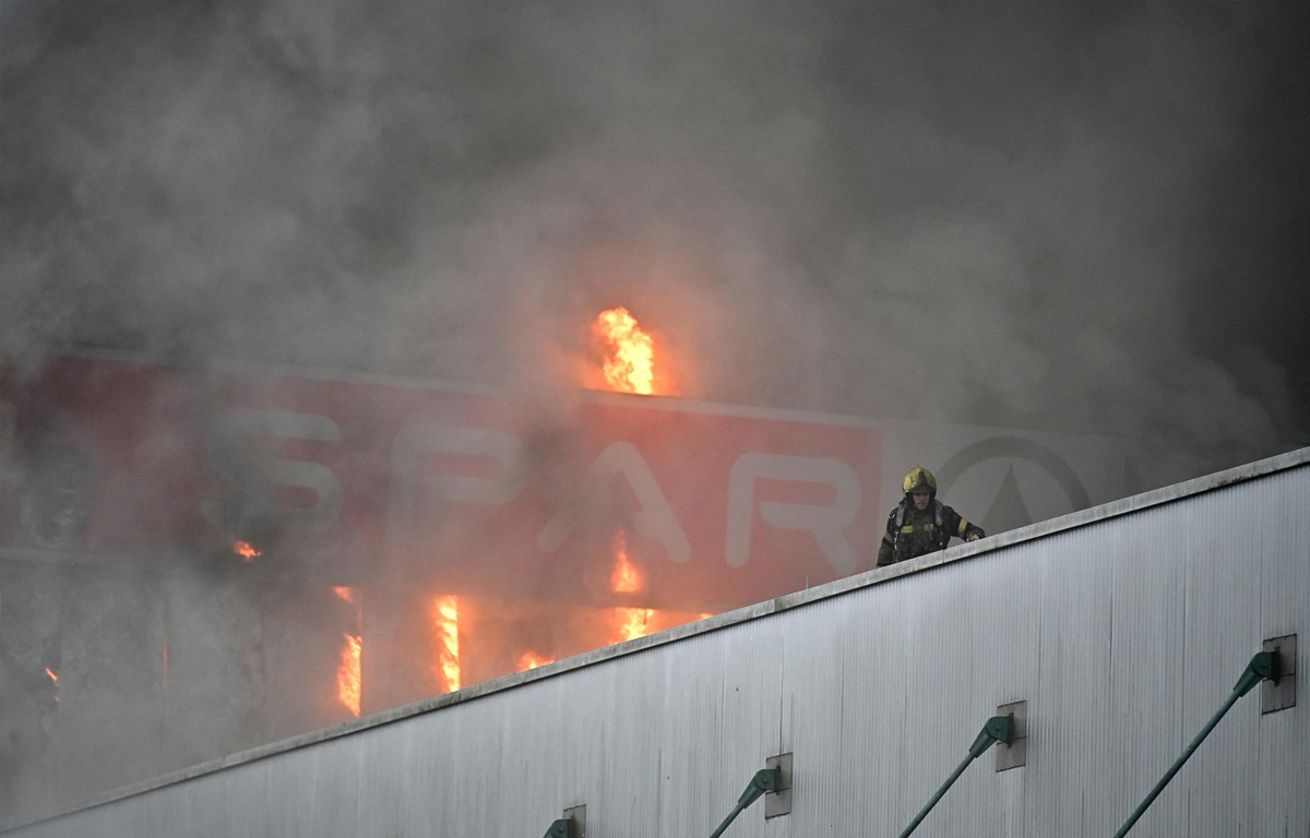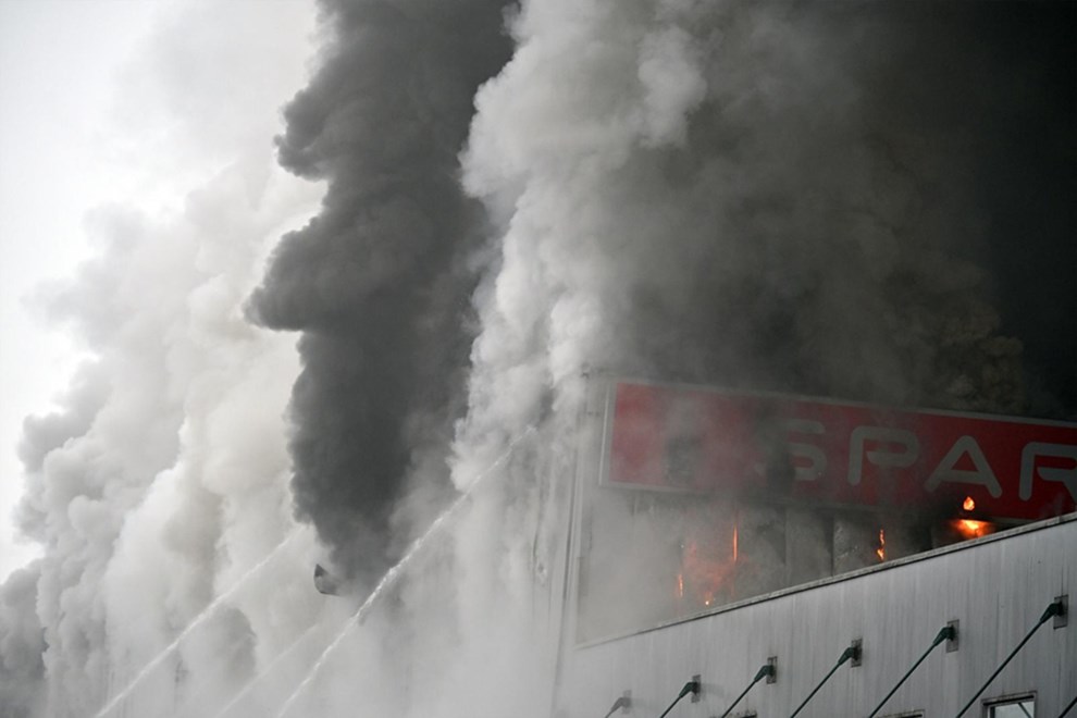 U SKLADIŠTU trgovinskog lanca Spar na Letališkoj cesti u Ljubljani danas je izbio veliki požar. Na terenu su bila 392 vatrogasca, a potvrđeno je da je veliki požar u večernjim satima lokaliziran. Vatrogasci nastavljaju s gašenjem pojedinačnih žarišta, piše 24ur.