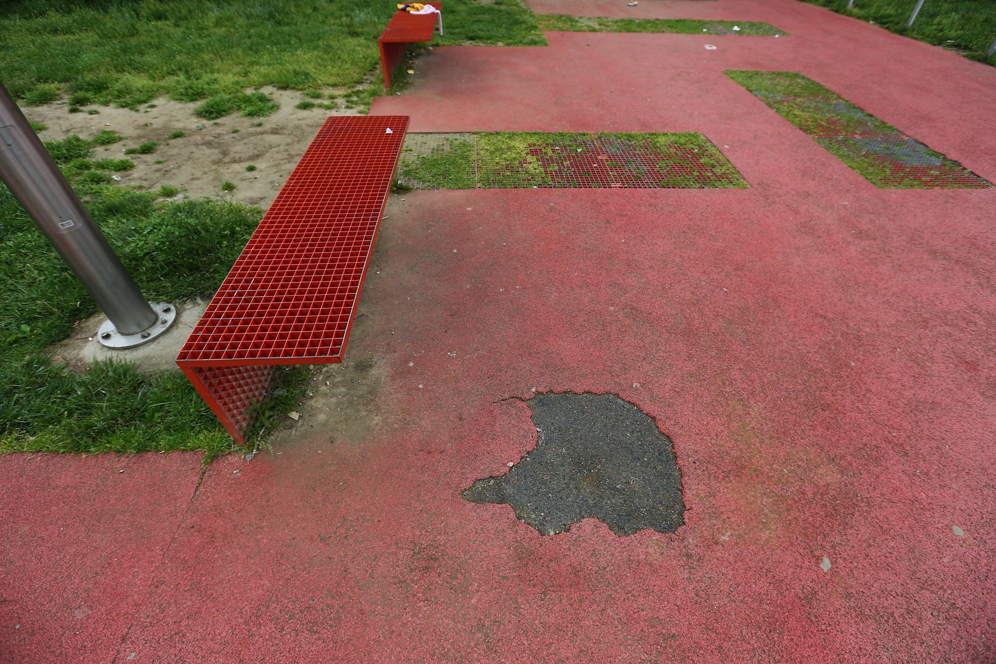Nedugo nakon što je otvoren, park je u potpunosti poplavio. Taj problem je uskoro saniran. No, iako je relativno nov, park izgleda prilično očajno. Antistresna podloga se odavno počela odvajati od tla, a na više mjesta je i uništena. Metalna rešetkasta ograda, koja je valjda zamišljena da se na njoj može sjediti nedugo nakon kiše, valjda je u teoriji izgledala dobro.