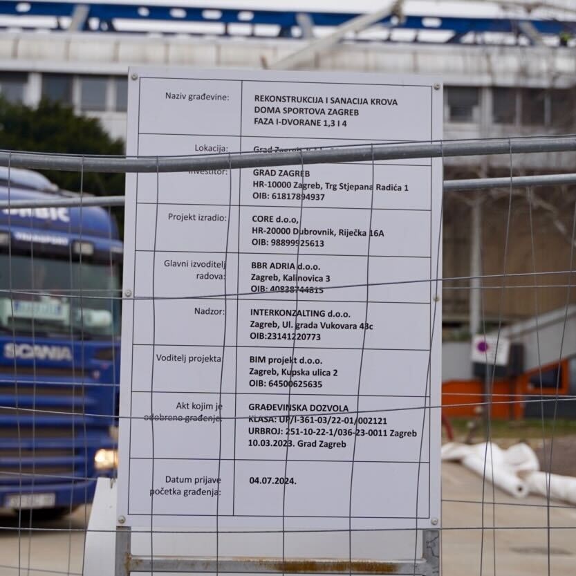 "U ovoj, najzahtjevnijoj fazi radova, kada se obnavljaju dvorane 1, 3 i 4, uključujući zamjenu krova i jačanje konstrukcije, potrebno je ograditi prostor oko Doma sportova radi izgradnje platoa za ogromnu dizalicu koja će služiti za obavljanje ovih složenih aktivnosti, od uklanjanja starih betonskih rešetki do postavljanja nove krovne konstrukcije.