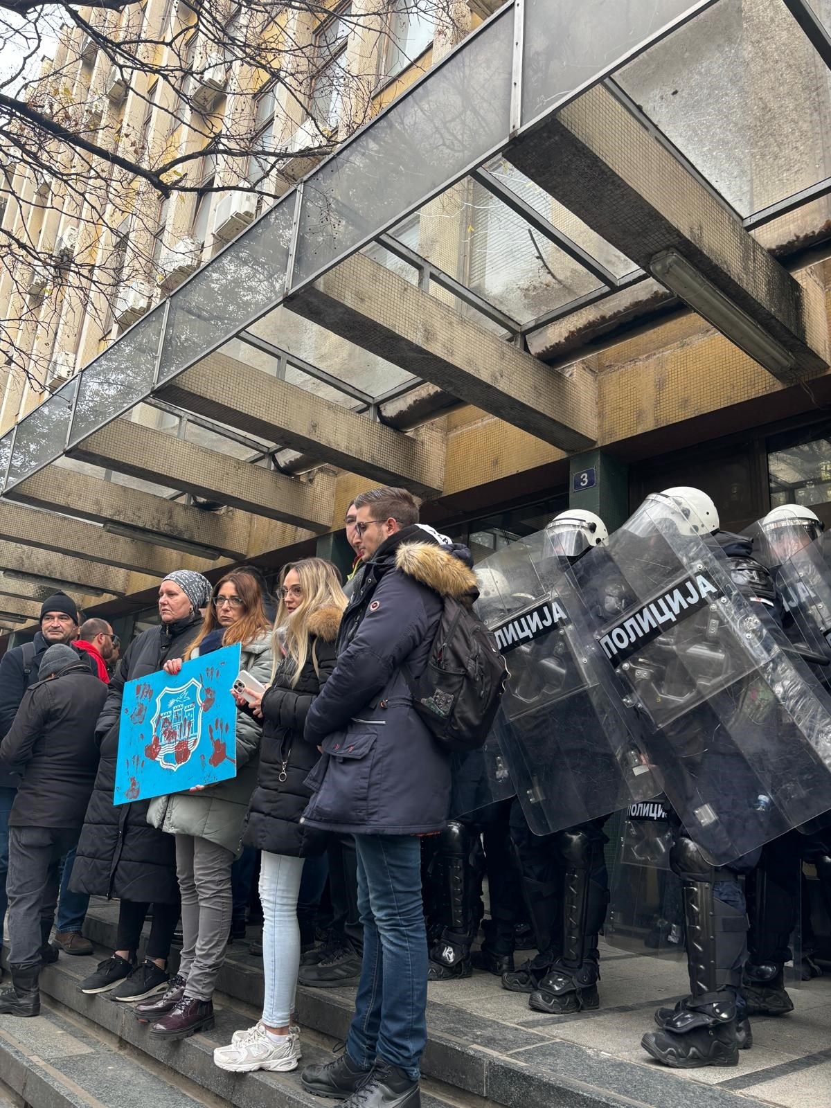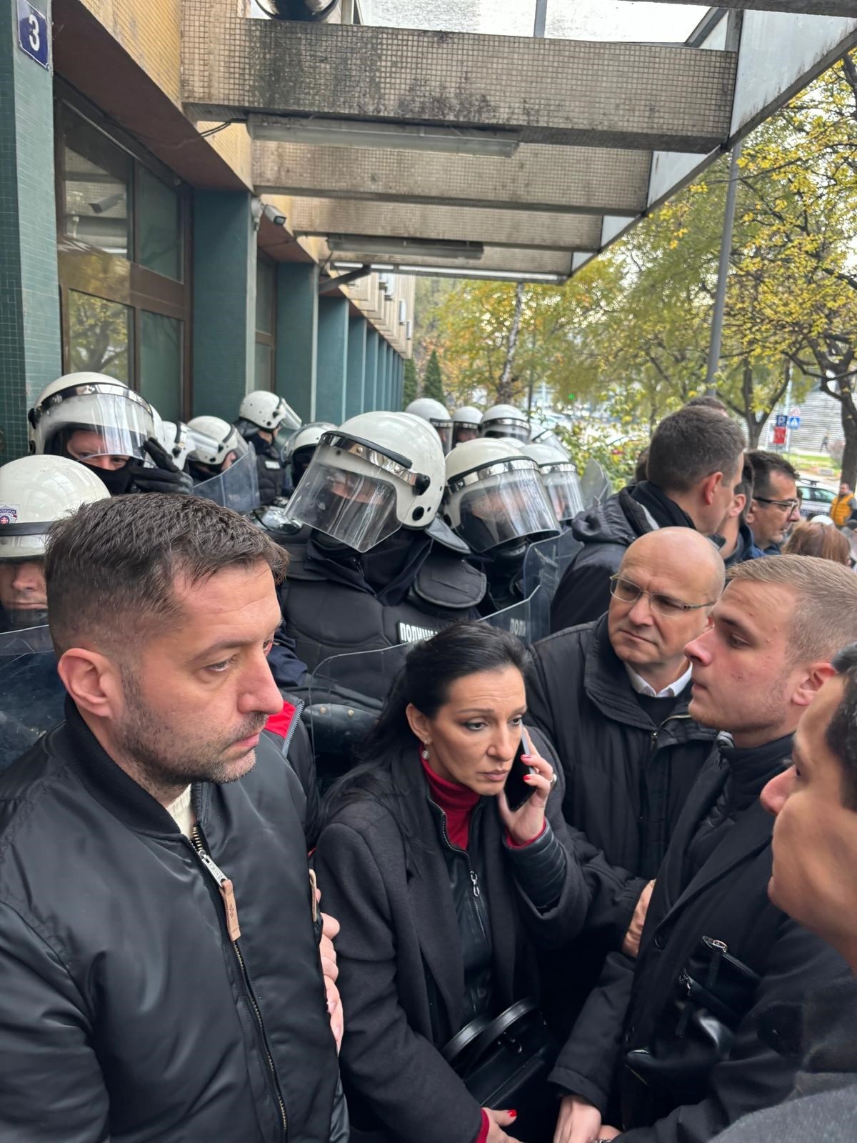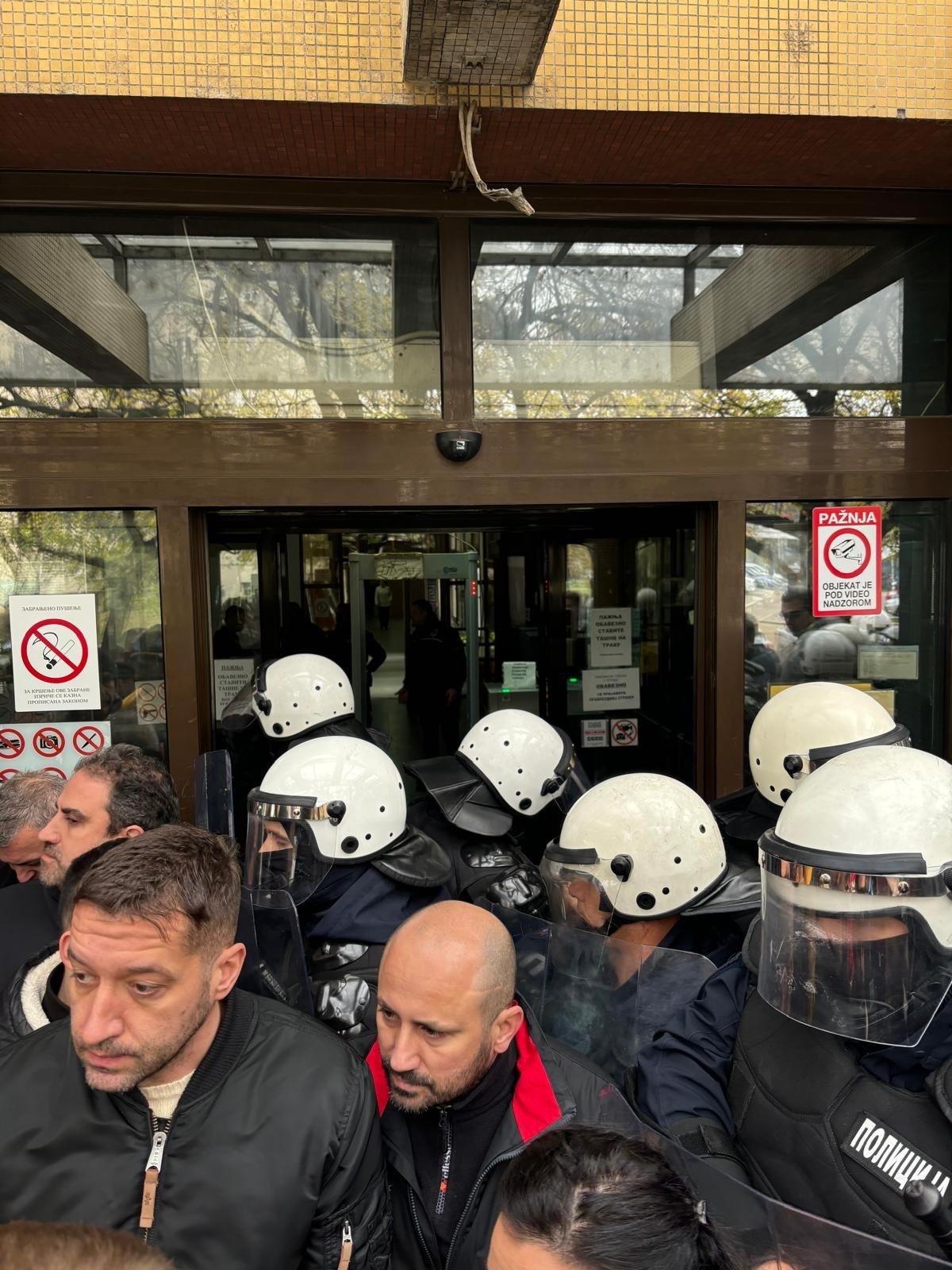 OPORBENI zastupnici Skupštine Srbije i Autonomne pokrajine Vojvodine, kao i gradski vijećnici, blokirali su jutros ulaz u novosadsko sjedište Tužiteljstva, zahtijevajući puštanje aktivista koji su zatvoreni tijekom prosvjeda zbog pada nadstrešnice u Novom Sadu, dok ih policija pokušava odgurati s ulaza i deblokirati instituciju, javili su lokalni mediji.