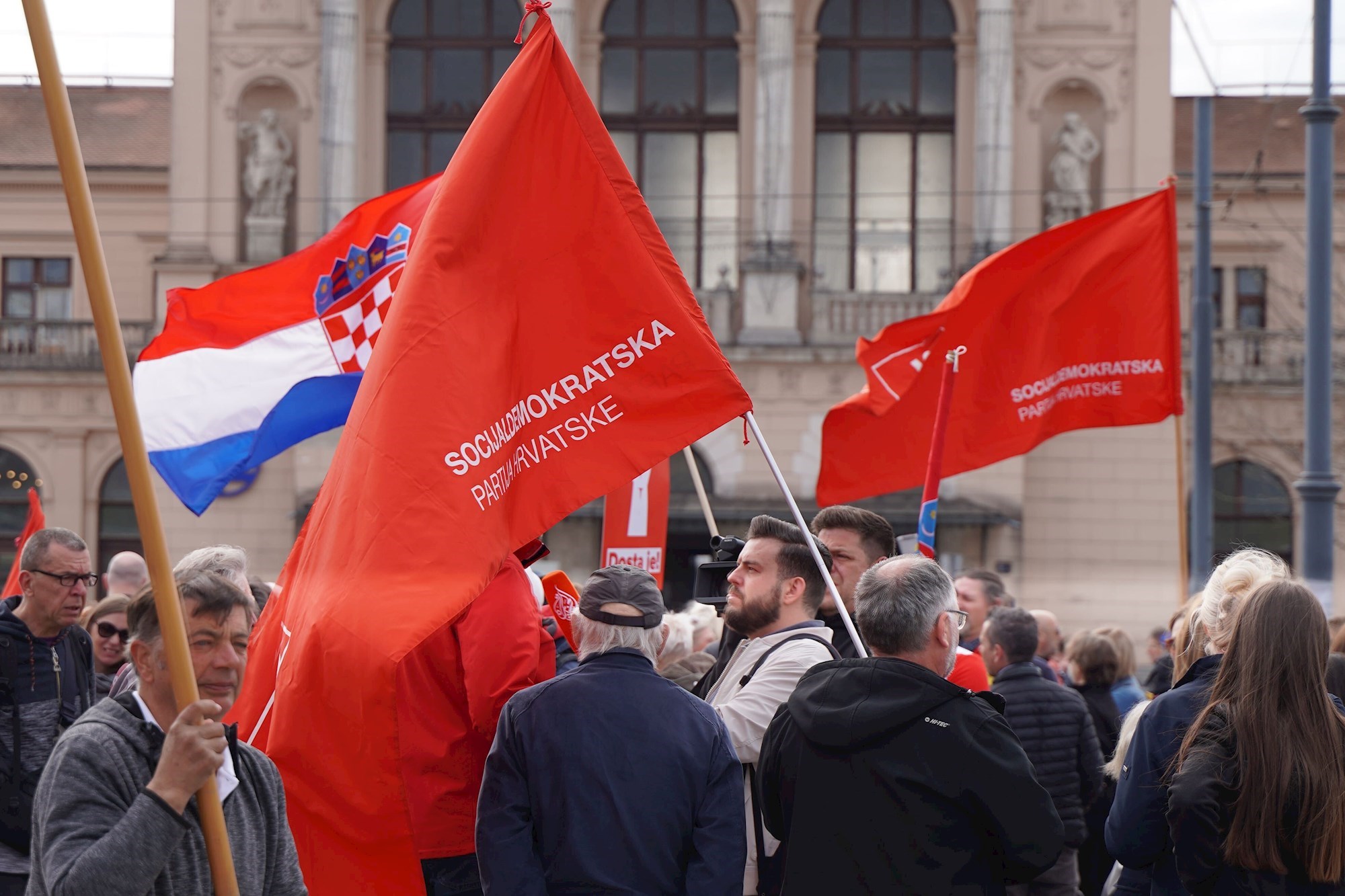 „Evo nas opet jer nam je dosta. Dosta je laži, lopovluka, kriminala i dosta je HDZ-a”, poručio je s Europskog trga Peđa Grbin, lider SDP-a i koalicije Rijeke pravde, najavljen kao 'veli Joža hrvatske socijaldemokracije', praćen pljeskom i uzvicima odobravanja.