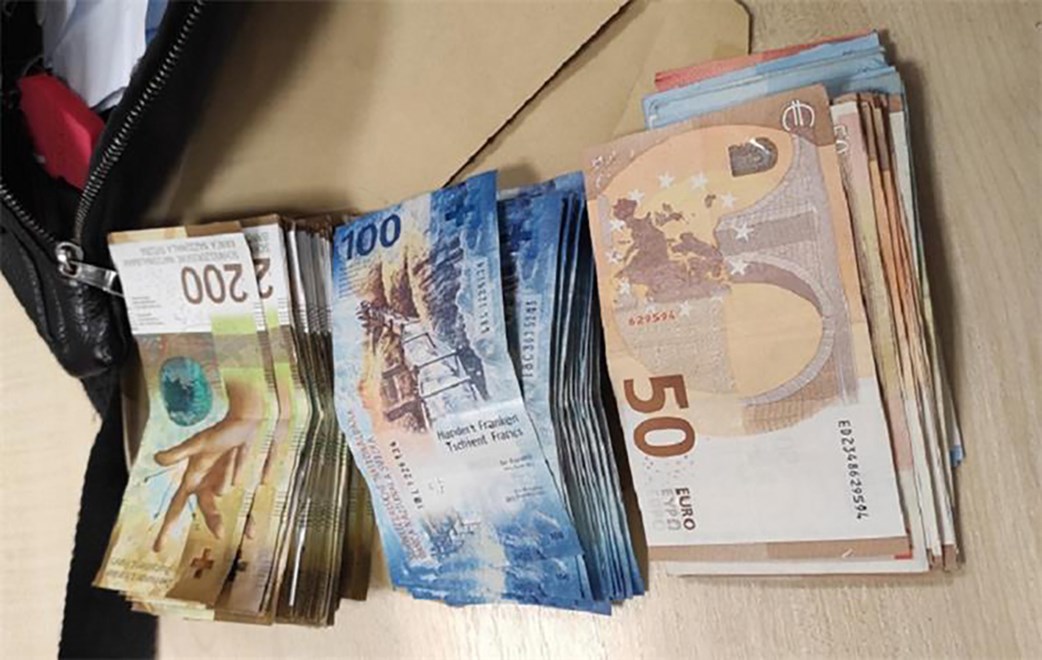 U osobnoj ručnoj torbici vozača, državljanina Republike Srbije, pronađen je novac koji nije bio prijavljen prilikom ulaska na područje Europske unije. Ukupno se radilo o 22.100 švicarskih franaka i 800 eura.