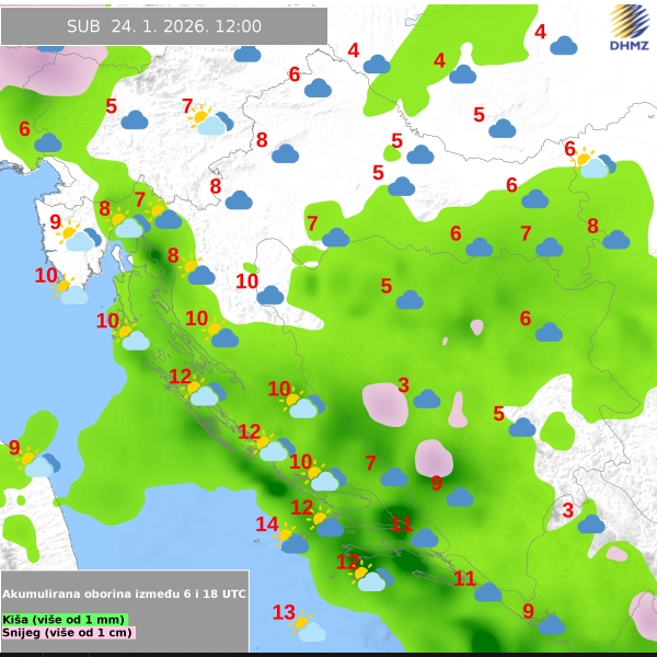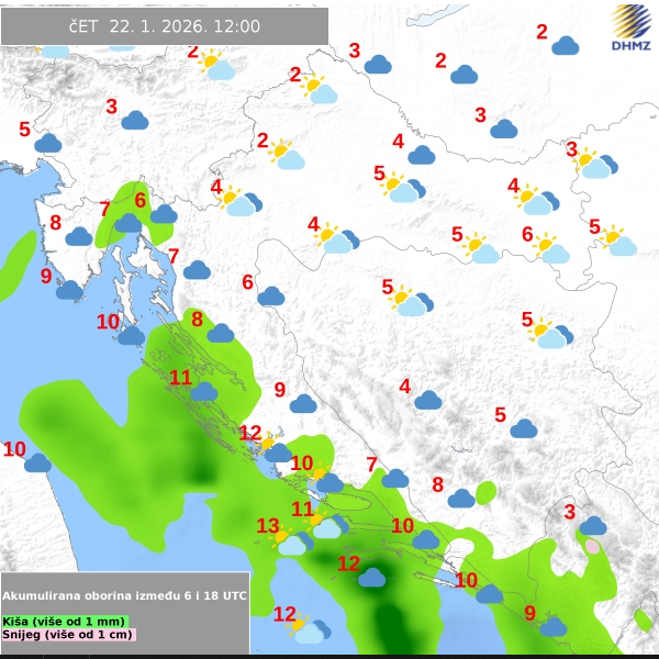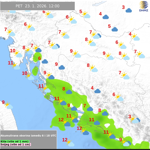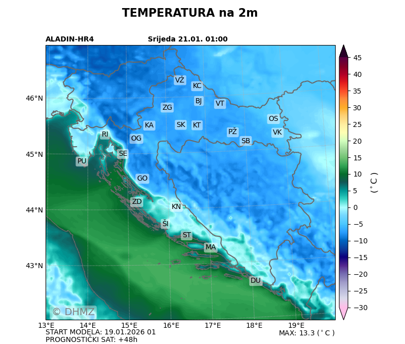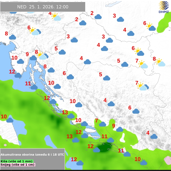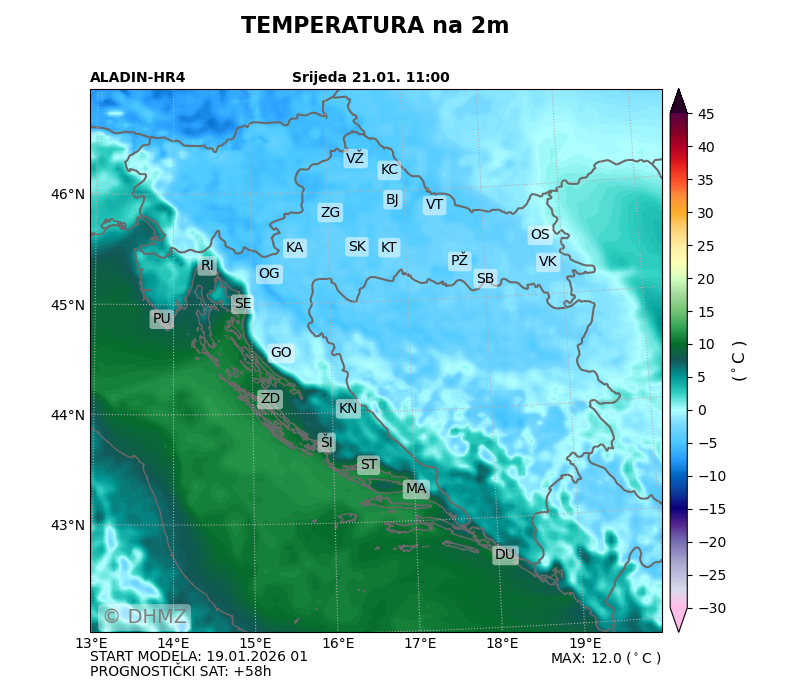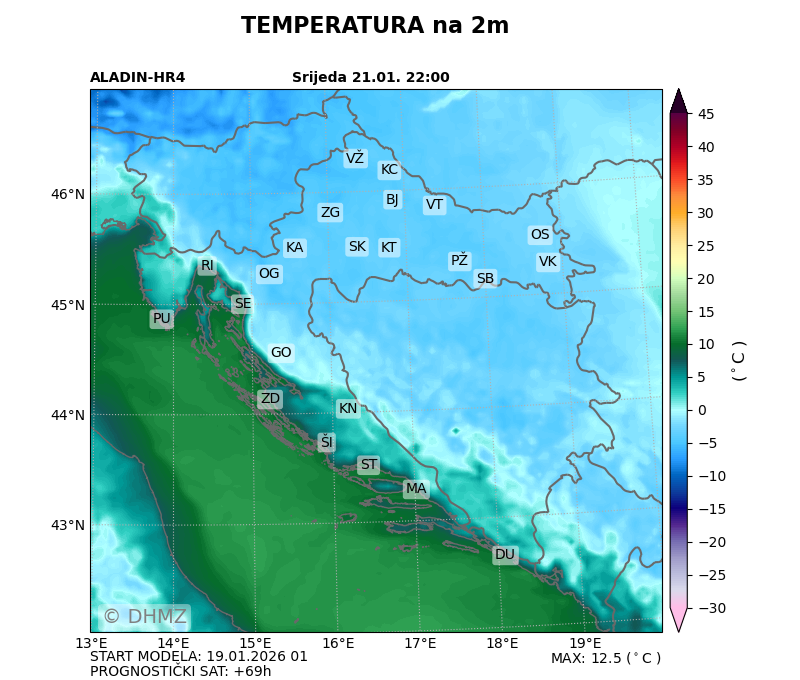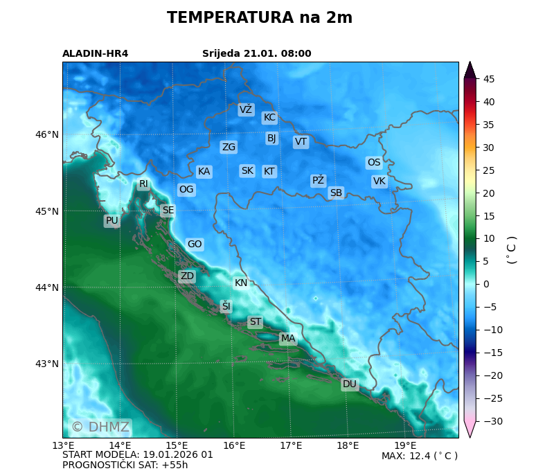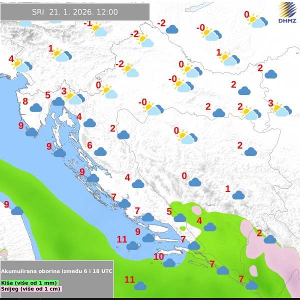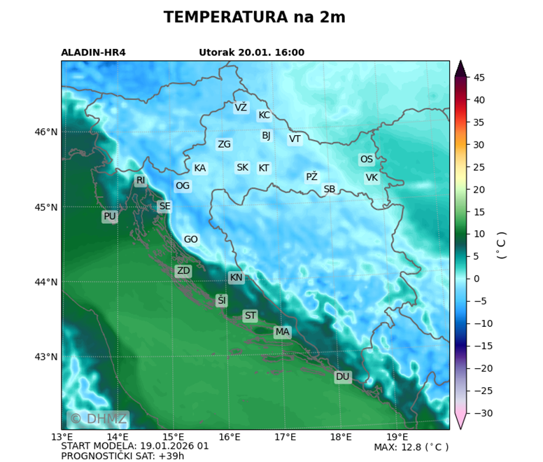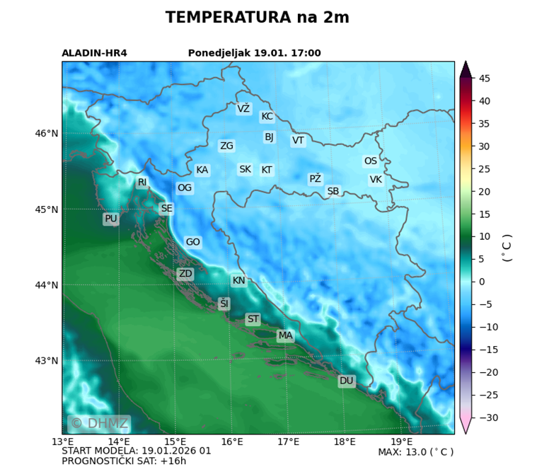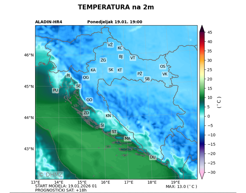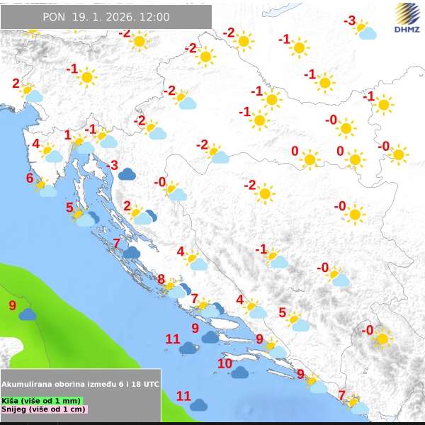 Noću do -10 na kopnu, preko dana oko nule, na moru sunčano i toplo
